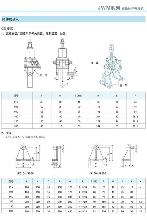 JWM絲桿升降機附件的確認-C型安裝