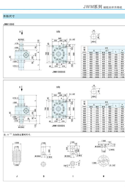 減速機|蝸輪絲桿升降機-JWM升降機750、1000外形尺寸圖-海洋傳動