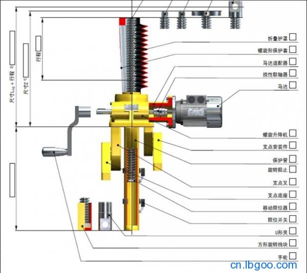 4.對有雙導(dǎo)向套的升降機,絲杠除承受軸向力外,也允許承受一定的側(cè)向力。